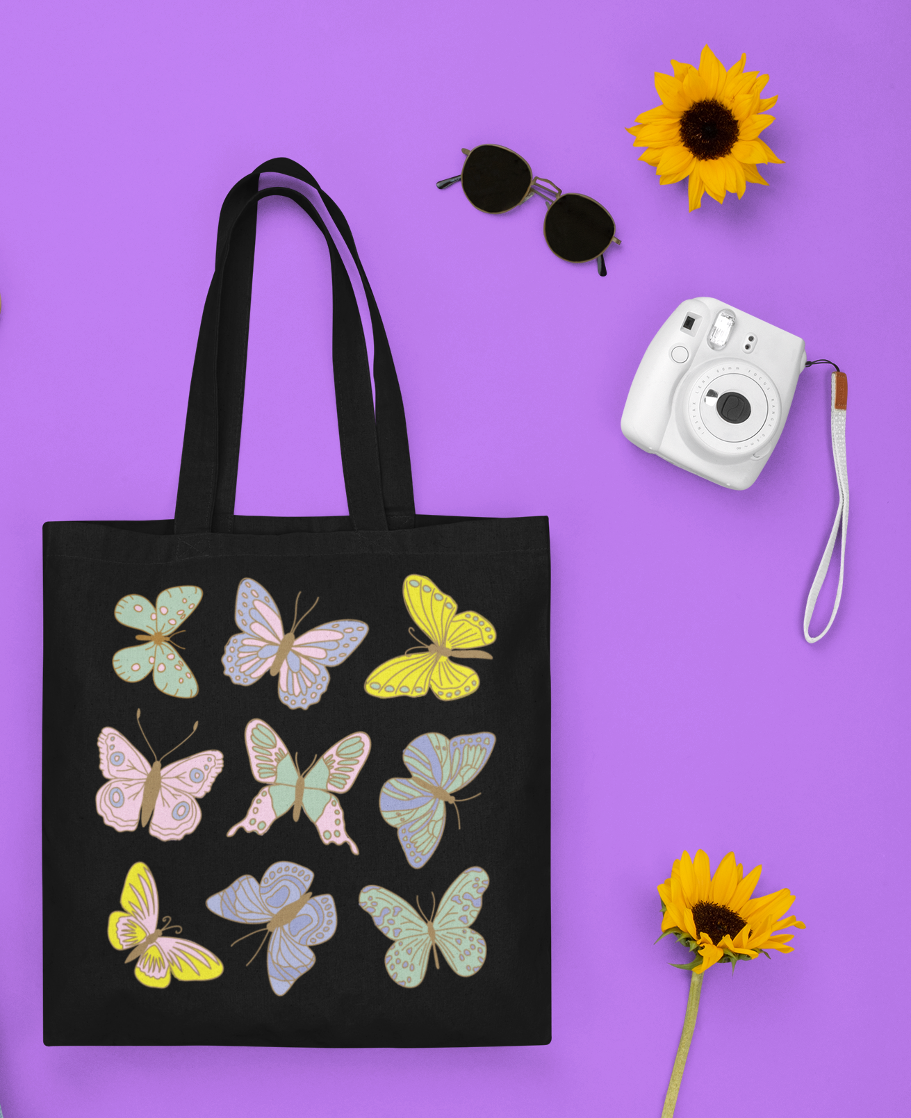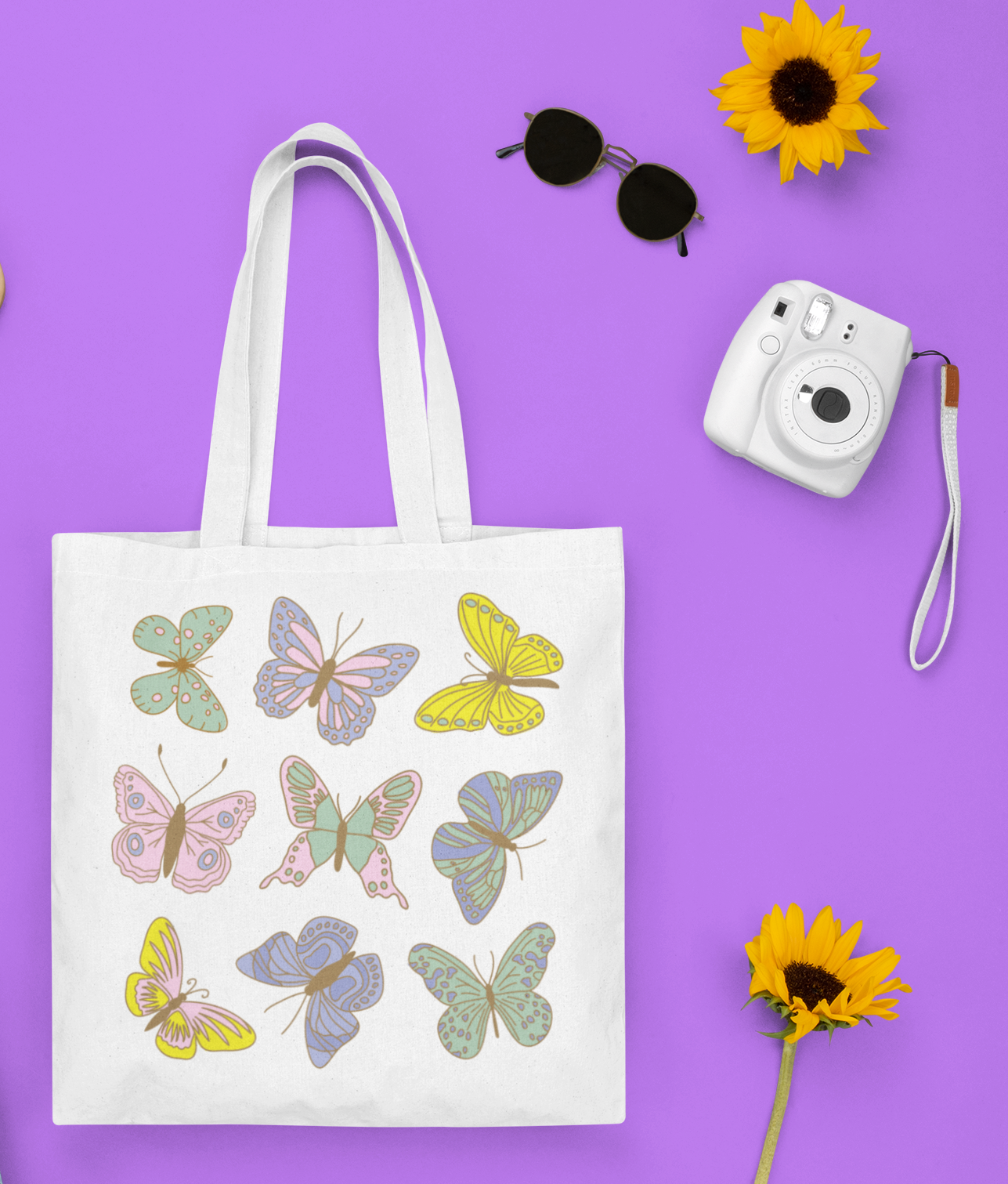 This tote bag is a vibrant colorful and graceful tote bag that captures the movements of beautiful summer Butterflies. Perfect for adventure travel. Add a touch of nature's elegance to your summer adventures.